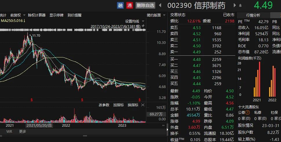 从信邦制药股价来看,自2021年10月以来,跌幅超过30%。