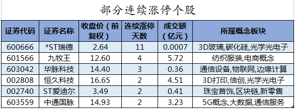 涨停股中,从收盘涨停板封单量来看,中国联通最受追捧,收盘涨停板封单有3486.18万股;其次是*ST新海、*ST瑞德,涨停板封单分别有2895.64万股、2779.37万股。以封单金额计算,华脉科技、中国联通、恒久科技等涨停板封单资金较多,分别有2.42亿元、2.03亿元、1.77亿元。