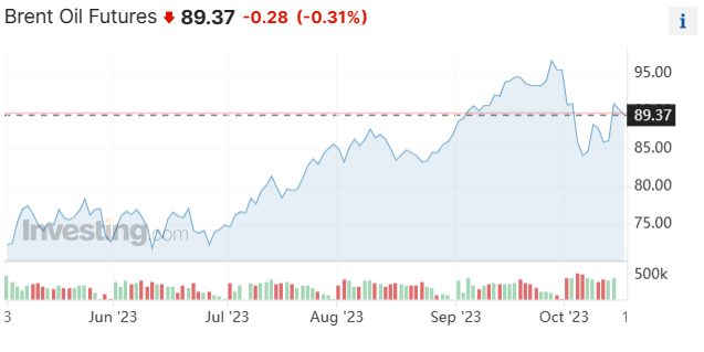 美东时间周一(10月16日),WTI 原油期货收跌1.17%,报86.66美元/桶;布伦特原油期货收跌1.3%,报89.65美元/桶。