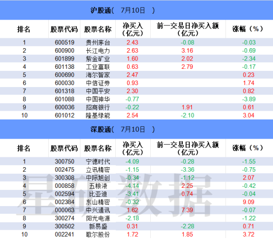 沪深股通两市前十大成交中净买入个股数量较多,净买入方面,长江电力净买入居首,该股连续3个交易日获净买入;隆基绿能、海尔智家净买入分居二、三位。