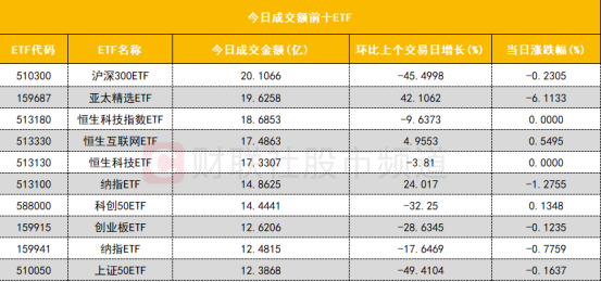 从成交额前十的ETF来看,沪深300ETF(510300)成交额位居首位,亚太精选ETF(159687)成交额位居次席,三只恒生指数ETF位居前十行列。