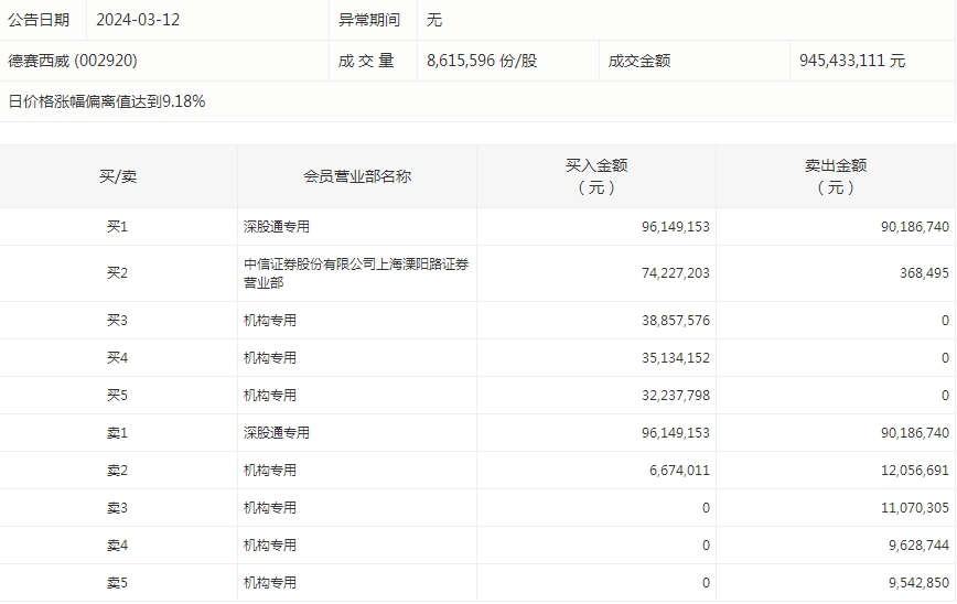 德赛西威今天涨停。盘后数据显示,7个机构出现在龙虎榜单上,合计净买入7060.49万元;中信证券股份有限公司上海溧阳路证券营业部买入7422.72万元,同时卖出36.85万元。