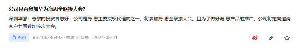 近期深圳华强在投资者互动平台的回复称,公司是海思主要授权代理商之一,将参加海思全联接大会。