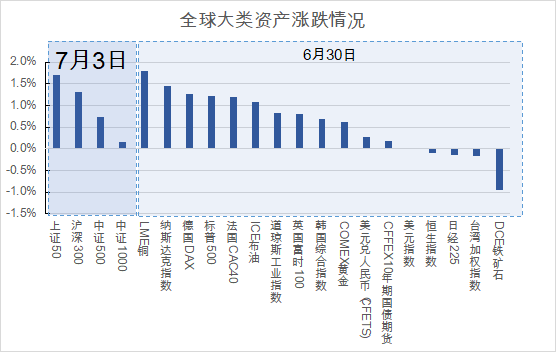 债市方面,本日10年期国债期货小幅收跌0.08%,但技术指标仍在改善。汇率方面,本日离岸人民币汇率大幅拉升,一度升至7.25附近,但随后回吐大部分涨幅。总的来看,当前人民币汇率的顶背离现象仍然存在,且被证实的可能性加大。海外方面,6月30日美股三大指数均收涨,印证了我们“顶背离带来的调整压力可能已经释放完毕”的观点。