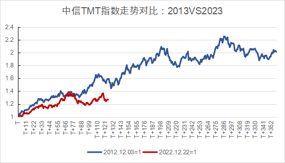 7月3日,TMT板块并未随着大盘同步上涨,传媒、计算机、通信行业均下跌,仅有电子行业小幅上涨,中信TMT指数整日下跌0.38%。对比2013年走势来看,当前TMT板块已经进入主升浪4浪调整浪,我们认为后续TMT板块的调整风险仍然存在。