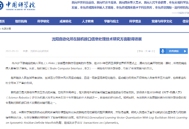 据中科院网站,中科院沈阳自动化研究所针对头皮脑电信号的解码问题开展研究,并取得进展。研究人员提出了基于对数欧氏度量黎曼几何的脑信号解码方法,在保证精度的同时提升了脑信号解码的效率。