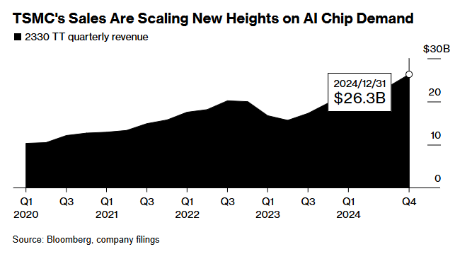 台积电(TSM.US)预计的2025年第一季度销售额和资本支出超出分析师的预期,这激发了人们对 2025 年人工智能硬件支出将保持弹性的希望。