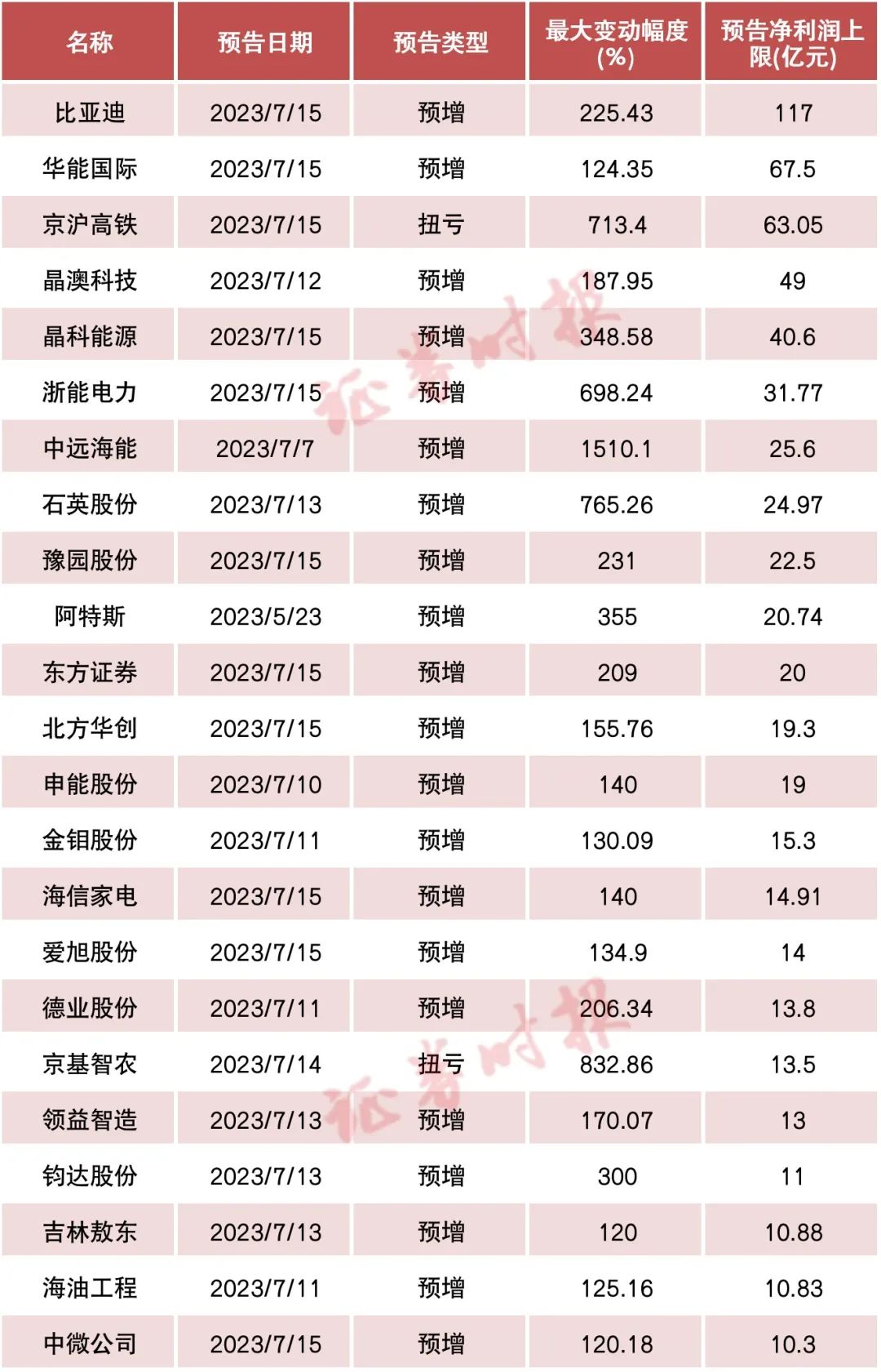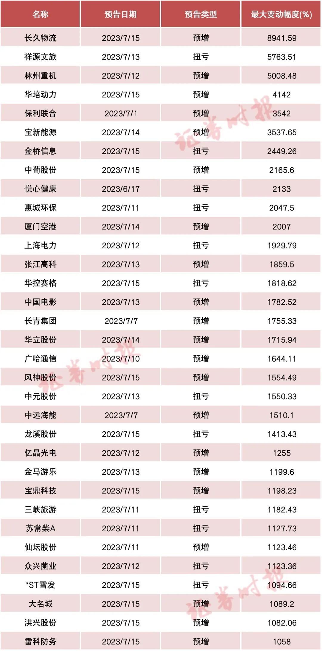 7月14日晚,近千家上市公司披露了上半年业绩预告,A股披露2023年上半年业绩预告的公司由此也增至1707家。
