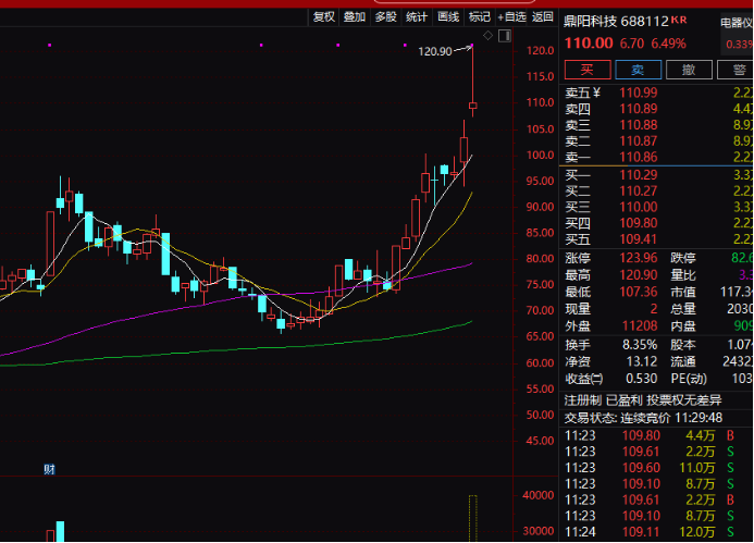 鼎阳科技今天上午一度大涨逾17%,后涨幅收窄。