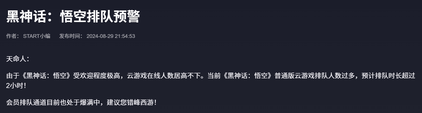 ①《黑神话:悟空》火爆出圈带动云游戏市场升温,目前START云游戏的服务器已经爆满,玩家需要排队才能游玩。