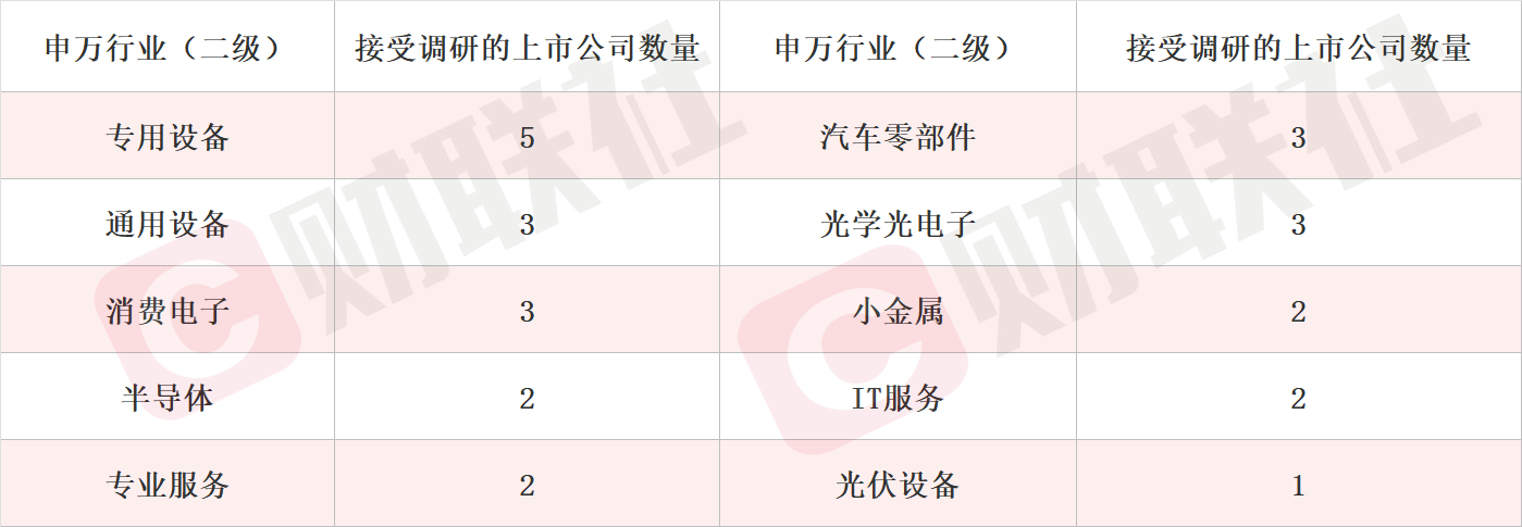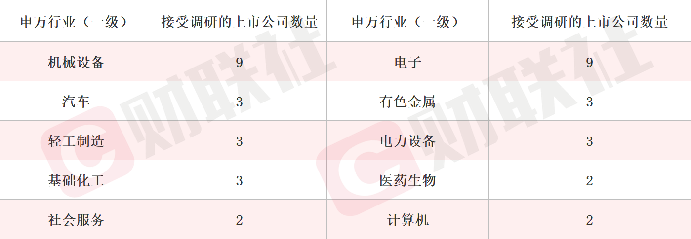 据统计,截至今日,沪深两市本周共48家上市公司接受机构调研。按行业划分,机械设备、电子和汽车行业接受机构调研频度最高。此外,轻工制造、社会服务等行业关注度有所提升。