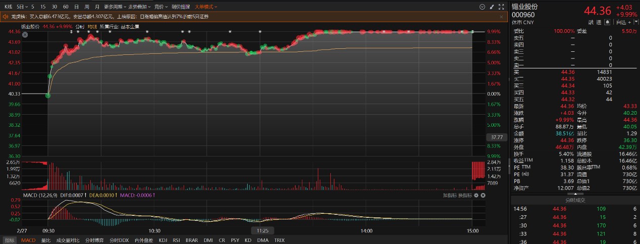 锡业股份周三发布机构调研纪要表示,公司铟生产基地都龙矿区是全国最大的原生铟生产基地,铟资源储量全球第一。截至2024年12月31日,公司铟金属保有资源储量4821吨,2025年前三季度公司生产产品铟101.62吨。铟产品是公司的主要产品之一,铟市场价格上涨预计将会对业绩产生正面的影响。二级市场上,锡业股份周五收盘涨停。