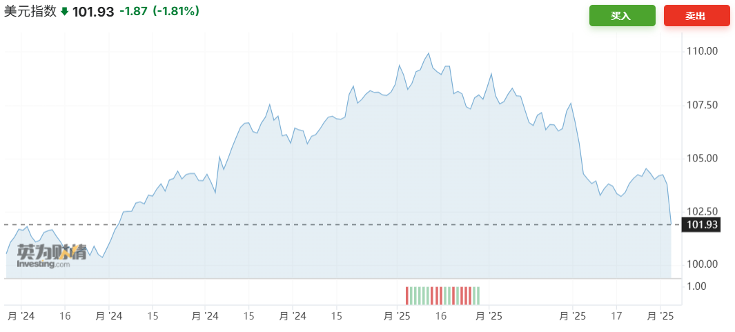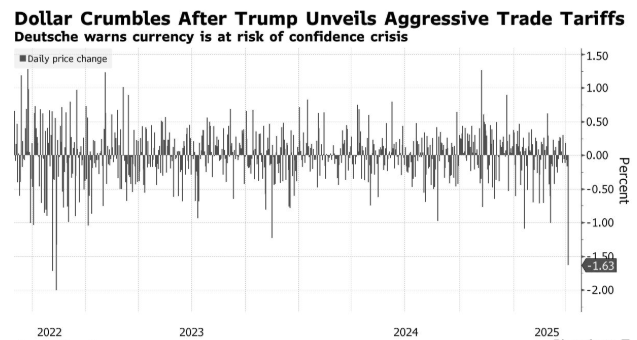 关税引发美元指数大跌 德银警告美元面临“信心危机”