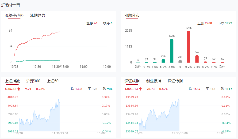 午评:沪指半日涨0.21%突破4000点大关 福建板块持续爆发