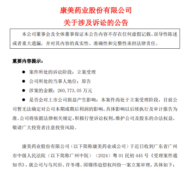 3月13日,ST康美发布公告,表示自己向公司创始人马兴田、许冬瑾夫妇,以及高管邱锡伟等人追偿26亿元的案子,已经获得法院受理。
