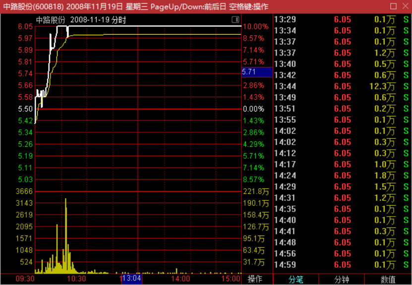 提到反击阳,不得不提到之前最经典的一个反击阳案例,那就是08年中路股份的反击阳了。