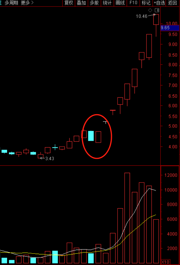 多方炮也就是所熟知的两阳夹一阴,出现这种形态特别是在底部的时候,就需要保持高度注意了。