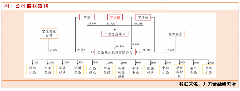 合盛硅业公司是我国工业硅龙头公司,公司也是全球硅化工行业龙头企业,成立于2005年,一直致力于工业硅和有机硅的规划化以及煤电硅一体化循环发展。 生产基地布局全国,浙江嘉兴、黑龙江黑河、四川泸州、新疆石河子、新疆鄯善、云南昭通、新疆乌鲁木齐等生产基地。截至 2024 年 6 月 30 日,公司工业硅产能 122 万吨/年,有机硅单体产能 173 万吨/年,多晶硅产能 5 万吨/年。合盛硅业创始人罗立国为公司实控人,现任公司董事长,与其子女罗燚、罗烨栋合计持有公司78.59%股权,实控人在硅行业从业20多年,管理经验丰富。公司属于家族企业。