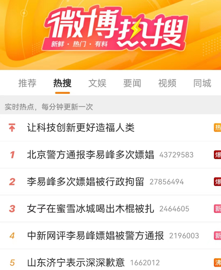 另据网友爆料,湖北卫视发紧急通知,要求所有关于李易峰代言的广告下刊,不过这则爆料的真假还有待查证。
