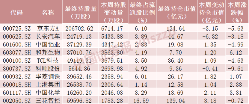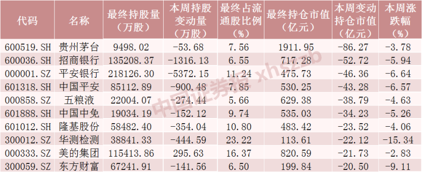 从市场表现看,本周北向资金持仓市值减少额居前十股均下跌,华测检测跌幅最大,累计下跌15.34%。