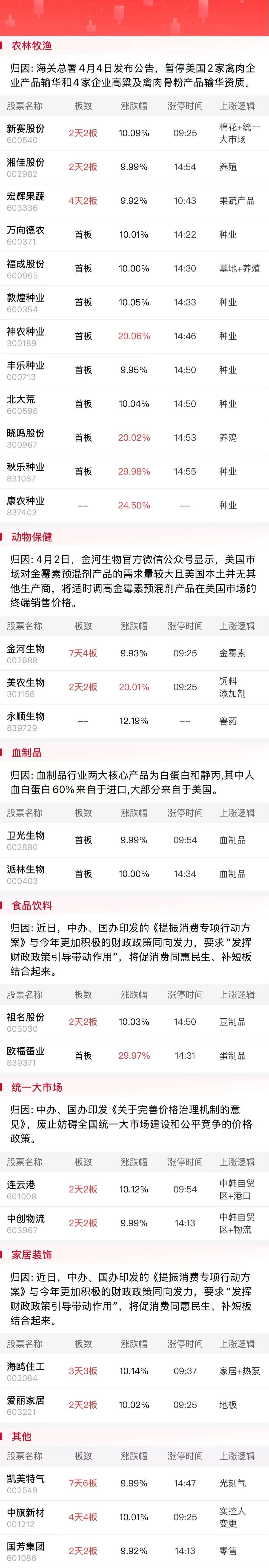 4月7日涨停分析:反制措施出台 农林渔牧走强