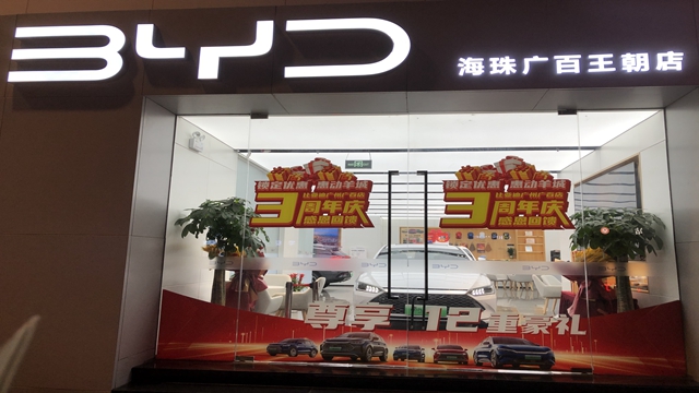 近日,第一财经记者在广州走访比亚迪海珠广百王朝店时发现,在现场看车的顾客很少。销售人员告诉记者,汉等车型暂时没有优惠,宋PLUS车系从3月10日至3月31日开展专项限时营销活动,下订即可享88元抵扣6888元购车款,直营店目前有现车可以提。而在去年国庆期间,记者了解到的情况是,比亚迪广州直营店宋PLUS DM-i有的型号提车大约需要两个多月时间。