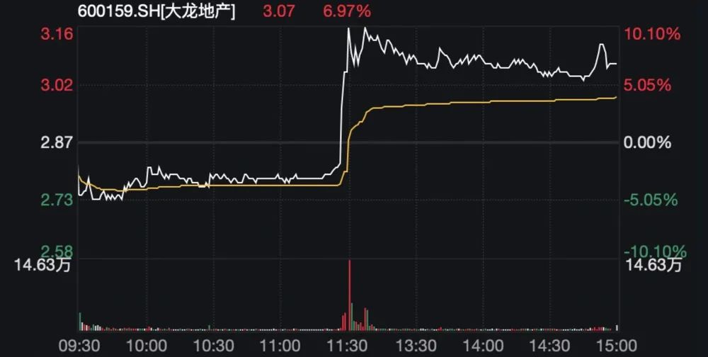 大龙地产盘中亦拉升触及涨停,但随后涨幅有所收窄,截至收盘涨6.97%。