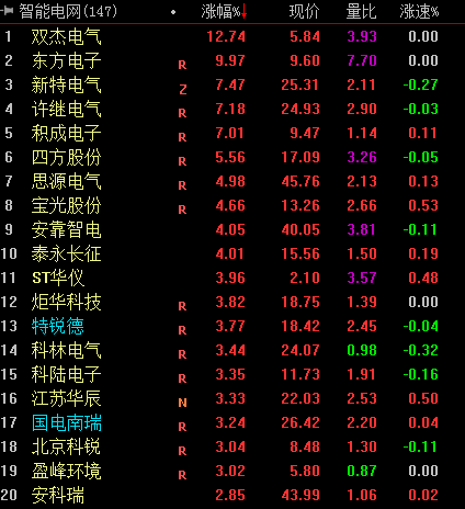 智能电网概念午后走强,截至发稿,双杰电气涨超12%,东方电子、许继电气、积成电子等涨幅居前。