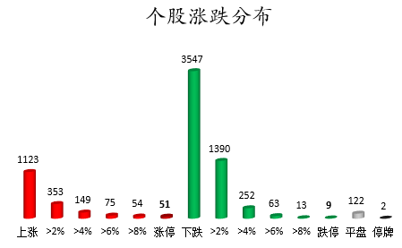 行业板块、概念方面看,行业板块跌多涨少,其中,国防军工、交通运输、钢铁、商贸零售、银行等行业板块涨幅靠前;统一大市场、在线旅游、免税概念、光伏高速公路、大飞机等概念走势活跃。燃气、农林牧渔、电气设备、石油石化、电子、煤炭、计算机、化工、环保等行业板块跌幅居前;粮食概念、猪肉概念、光刻胶、PCB、空气能热泵、青蒿素、无线耳机、摄像头等概念走弱。涨停个股主要集中在汽车、机械设备、商贸零售、交通运输、建筑装饰等行业。