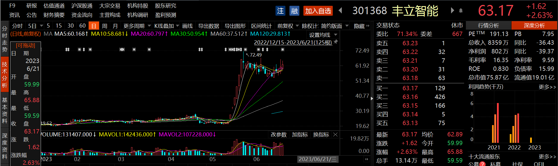 二级市场上,为智能机器人提供精密减速器的龙头企业丰立智能自5月17日迄今股价累计最大涨幅243.23%。