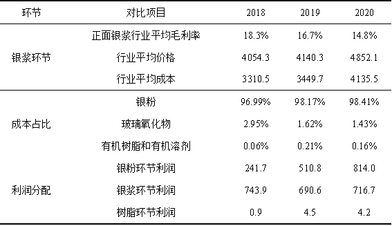 银浆产业链包括银粉生产(白银现货—银粉)环节,其他辅材(玻璃粉—树脂)环节和银浆加工环节。其中,银粉对于光伏银浆的产品性能至关重要且在生产成本中占比超过9成,毫无疑问是光伏银浆产业链上最核心的环节。
