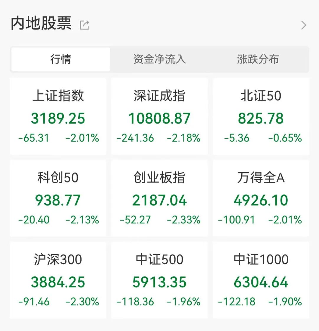 8月11日,A股三大指数全线调整,集体跌逾2%。沪指收跌2.01%,创年内最大跌幅,尾盘失守3200点关口,报3189.25点。深成指跌2.18%,创业板指跌2.33%。