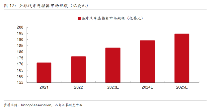 有关市场分析机构Bishop&Associates的预测表明,到2025年,全球汽车连接器市场的规模可能会达到194.52亿美元,是连接器民品端的一大重要增长赛道。