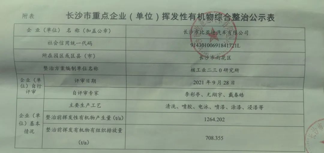 长沙市生态环境局披露附件显示,在2021年9月28日的评审中,长沙比亚迪在整治前挥发性有机物产生量(t/a)为1264.202,而整治前挥发性有机物有组织排放量(t/a)为708.355,整治前挥发性有机物无组织排放量(t/a)为87.381。