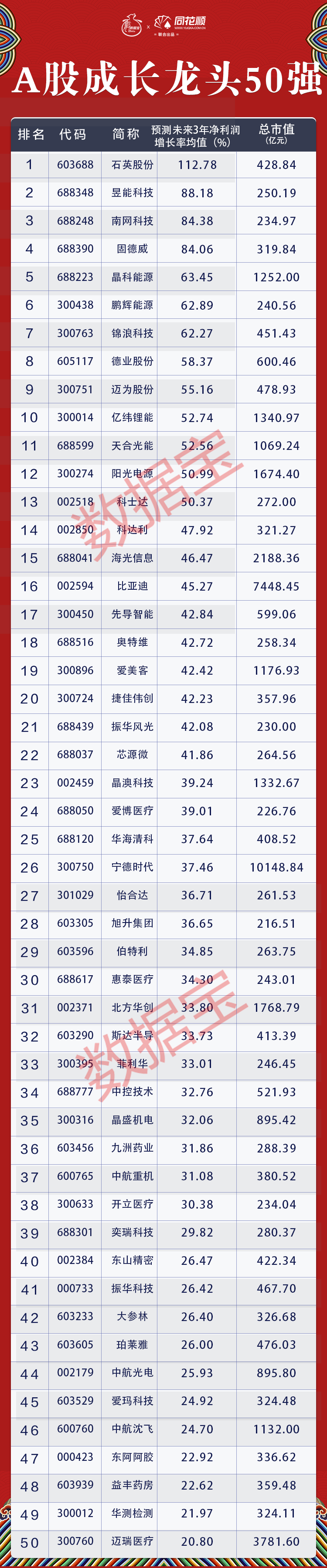 未来3年净利润增速均值近40%!成长龙头50强出炉