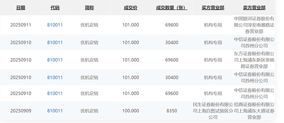 上市首日,优机定转有一笔按照面值100元的成交,成交金额83.50万元。9月10日,优机定转的成交有所活跃,出现四笔成交,成交价升至101元,成交金额2020万元。今日,优机定转有一笔成交,以101元的价格成交了702.96万元。