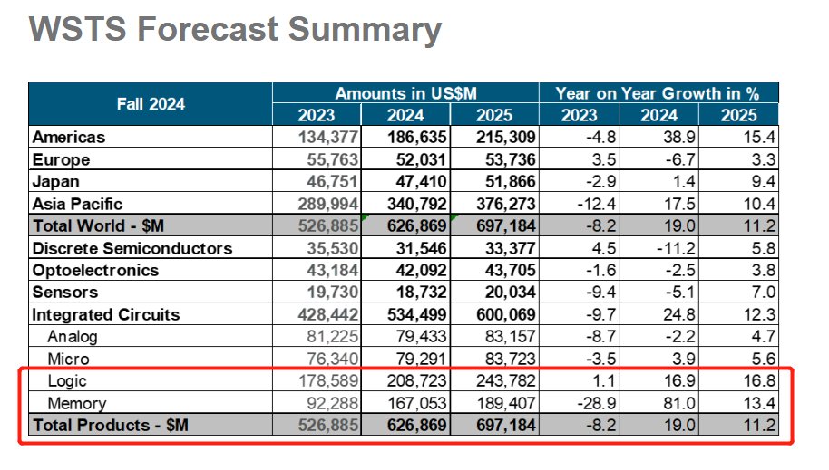 根据世界半导体贸易统计(WSTS)的最新预测,预计 2025