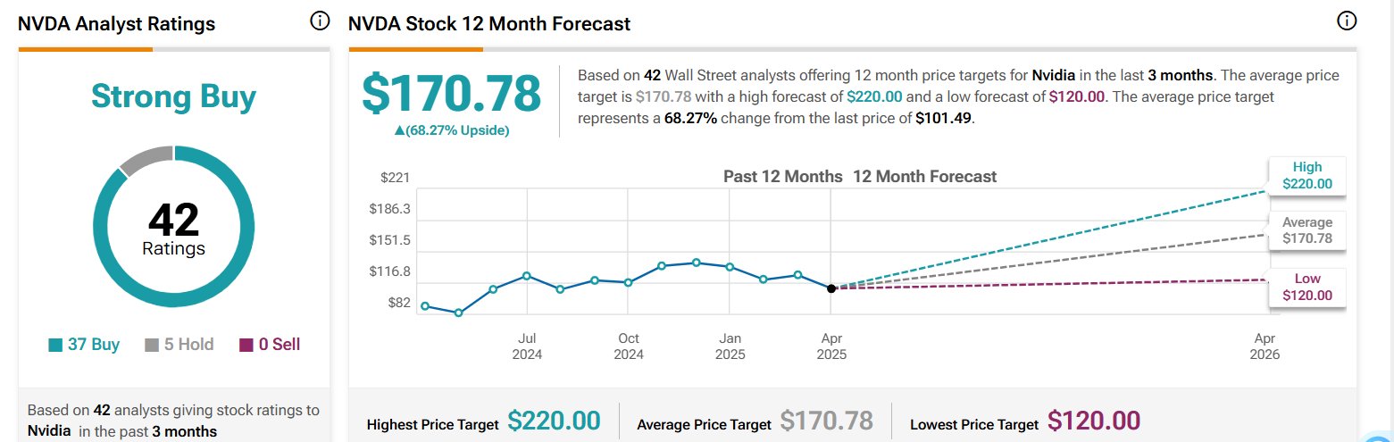 Sandler在最新研报中虽然小幅下调英伟达目标股价,但是仍然予以至少135美元的12个月内目标股价,以及等同于“买入”的最乐观评级。TIPRANKS汇编的华尔街分析师最新评级与目标价显示,华尔街对于英伟达股票的共识评级为“强力买入”,并且未出现任何“卖出”评级;12个月内的平均目标价高达170美元,意味着潜在上行空间高达68%;最高目标价则高达200美元,最悲观的目标价则为120美元——仍显著高于当前股价。