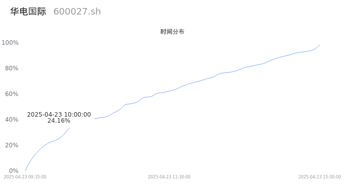 600027华电国际2025年04月23日成交65.93万手,成交金额3.77亿,相较昨日缩量28.19万手,换手率0.77%,成交清淡。