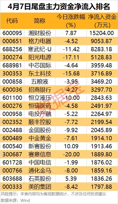 此外,还有格力电器、寒武纪-U、阳光电源、中芯国际、东土科技、五粮液等尾盘主力资金净流入金额居前。