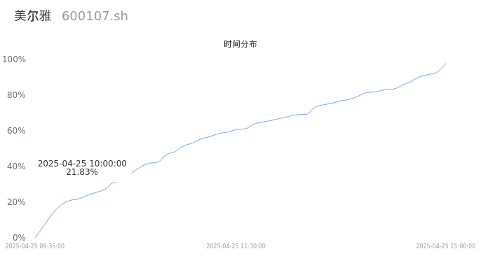 600107美尔雅2025年04月25日成交8.76万手,成交金额3629.06万,相较昨日缩量4.47万手,换手率2.43%,成交清淡。