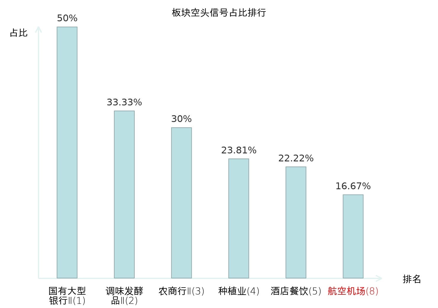 全市场所有行业板块中主力空头信号占比排名中,国有大型银行Ⅱ板块位居第一。半导体板块名次提升最快,较昨日上升94位。