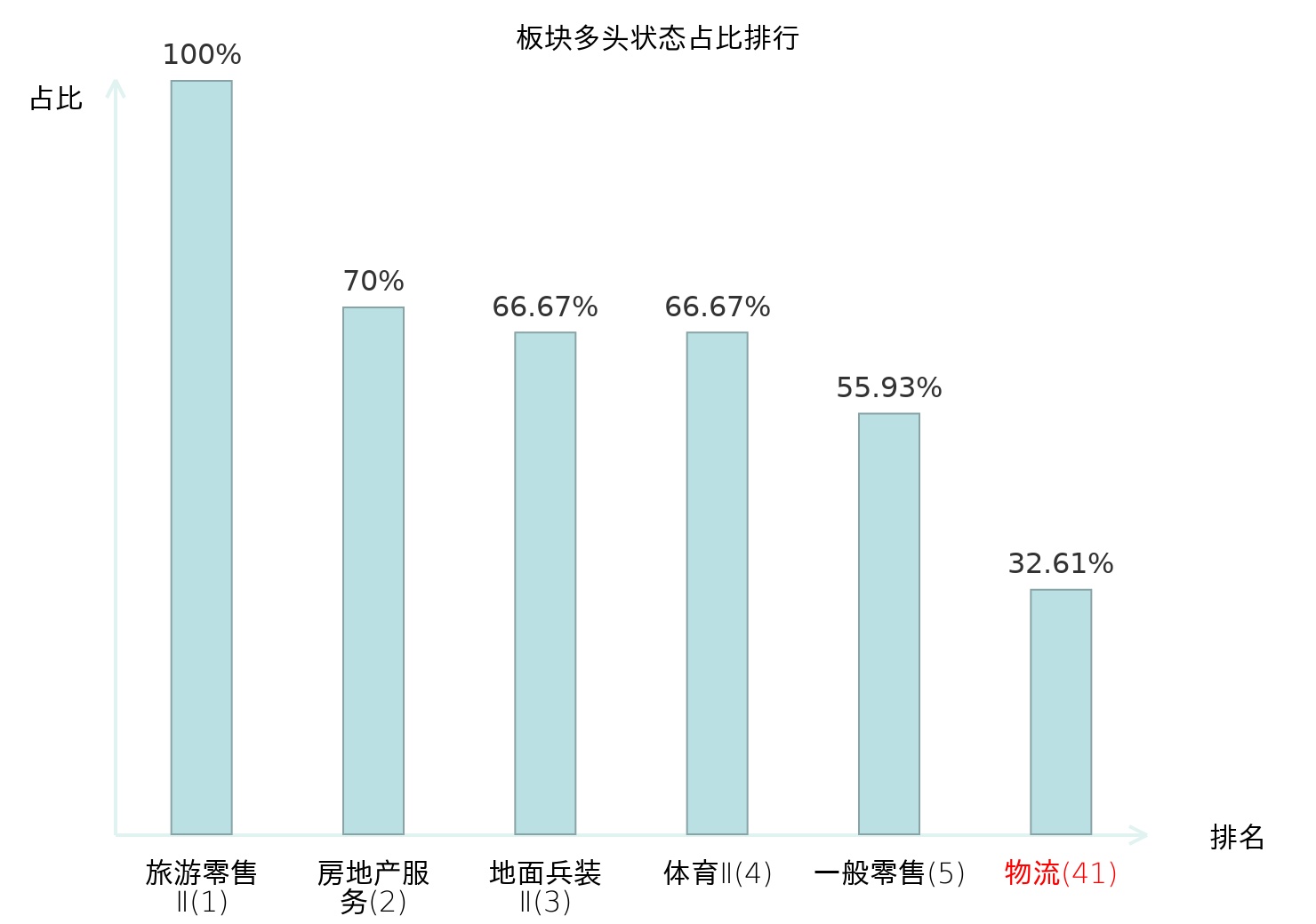 全市场所有行业板块中主力多头状态占比排名中,旅游零售Ⅱ板块位居第一。林业Ⅱ板块名次提升最快,较昨日上升68位。