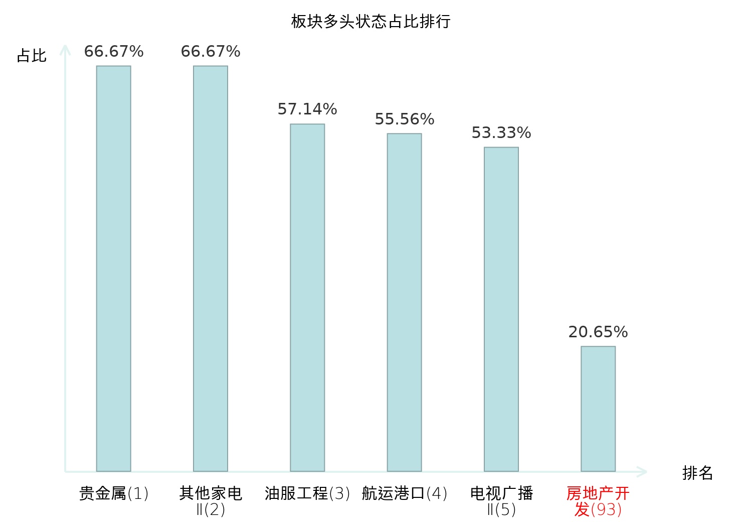全市场所有行业板块中主力多头状态占比排名中,贵金属板块位居第一。医疗服务板块名次提升最快,较昨日上升68位。