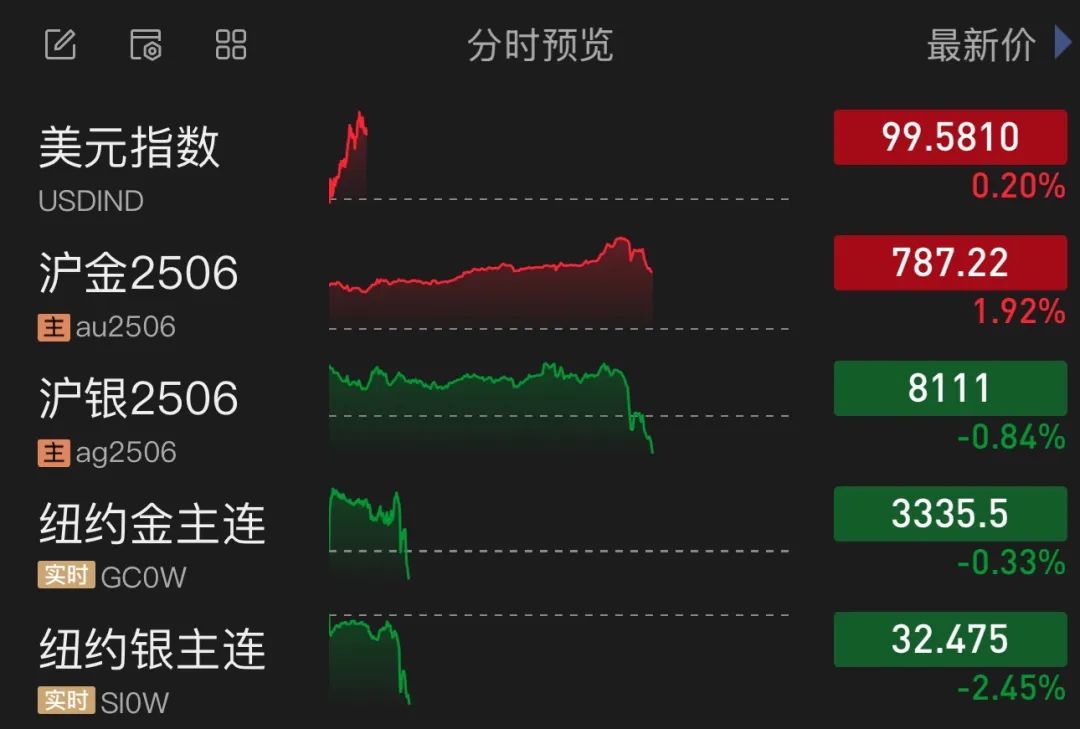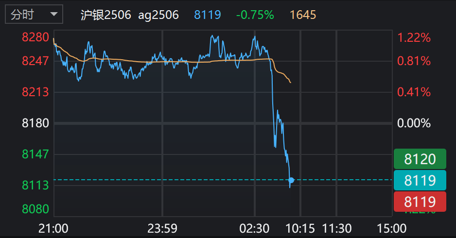 国内沪金、沪银主力合约纷纷跟随跳水。