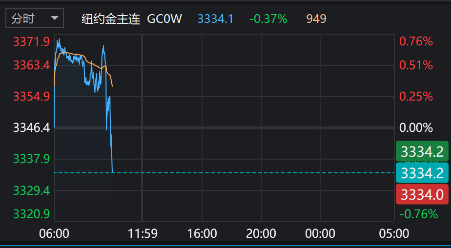 COMEX黄金自3370美元/盎司高点短线跳水超30美元,最新报3335.5美元/盎司。
