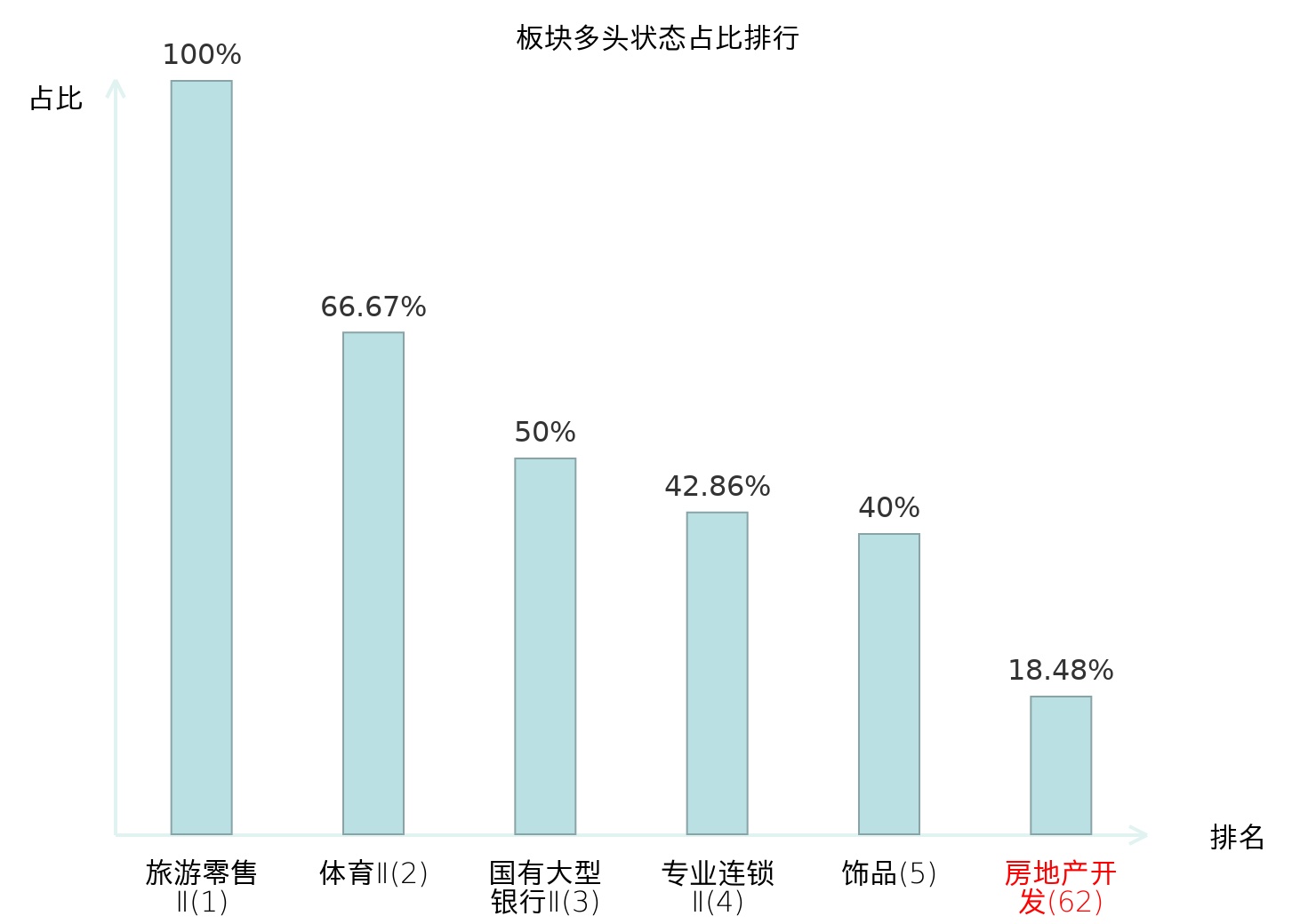 全市场所有行业板块中主力多头状态占比排名中,旅游零售Ⅱ板块位居第一。半导体板块名次提升最快,较昨日上升78位。
