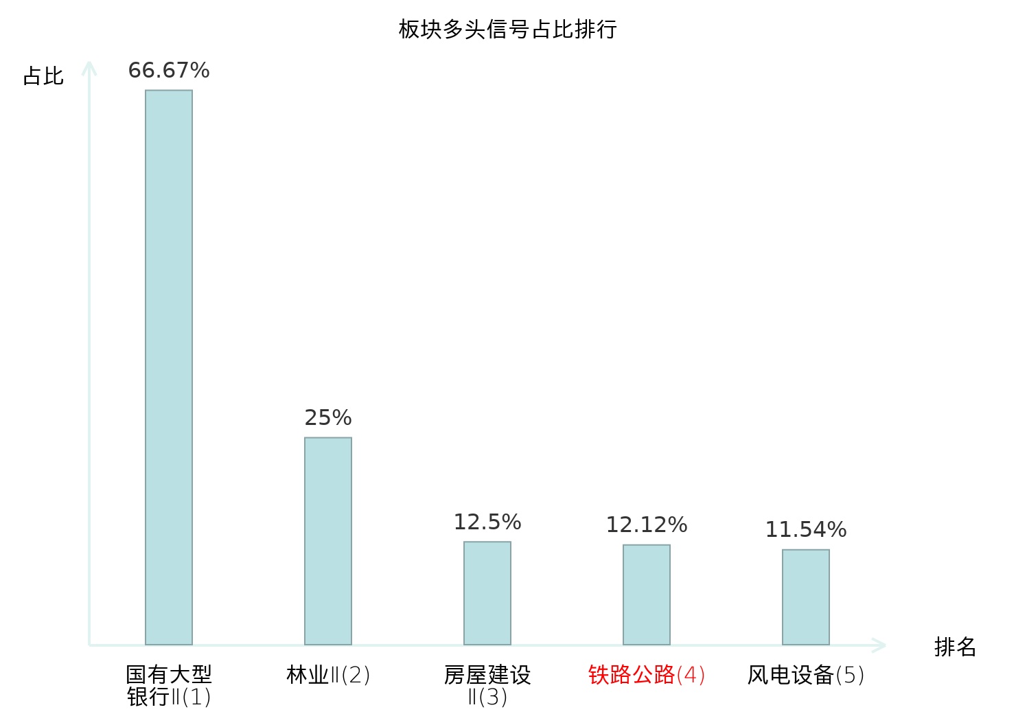 全市场所有行业板块中主力多头信号占比排名中,国有大型银行Ⅱ板块位居第一。林业Ⅱ板块名次提升最快,较昨日上升124位。