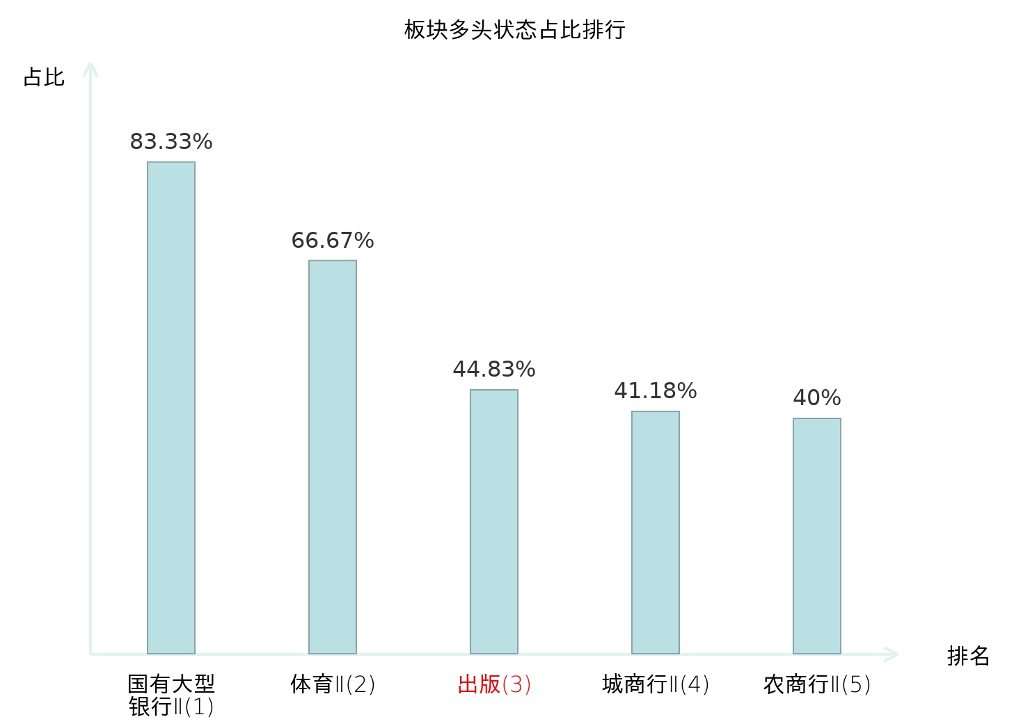 全市场所有行业板块中主力多头状态占比排名中,国有大型银行Ⅱ板块位居第一。焦炭Ⅱ板块名次提升最快,较昨日上升35位。