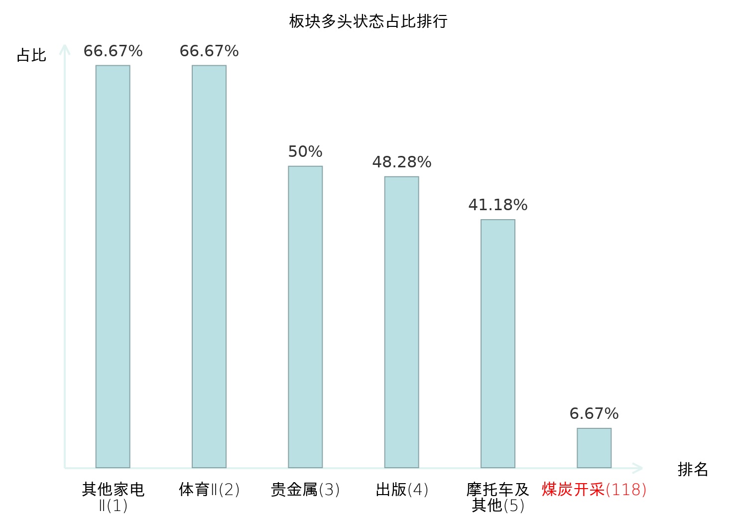 全市场所有行业板块中主力多头状态占比排名中,其他家电Ⅱ板块位居第一。乘用车板块名次提升最快,较昨日上升81位。